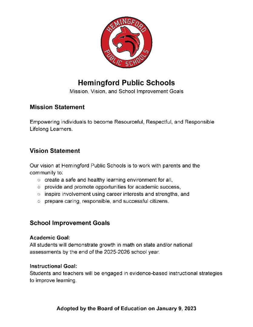 Source : www.chinaspringisd.netHemingford Public School District #10 Mission and Vision Statement